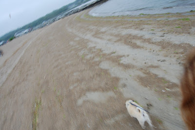 We were feeling a little better so we hit the road and drove to the beach. While he waited in line at the takeout window she and I did some people watching.....sniffed around a bit. Then chowder and clams at a picnic table by the ocean.....yeah, I think we're starting to come around.